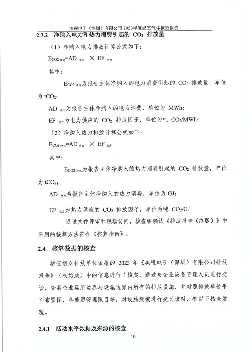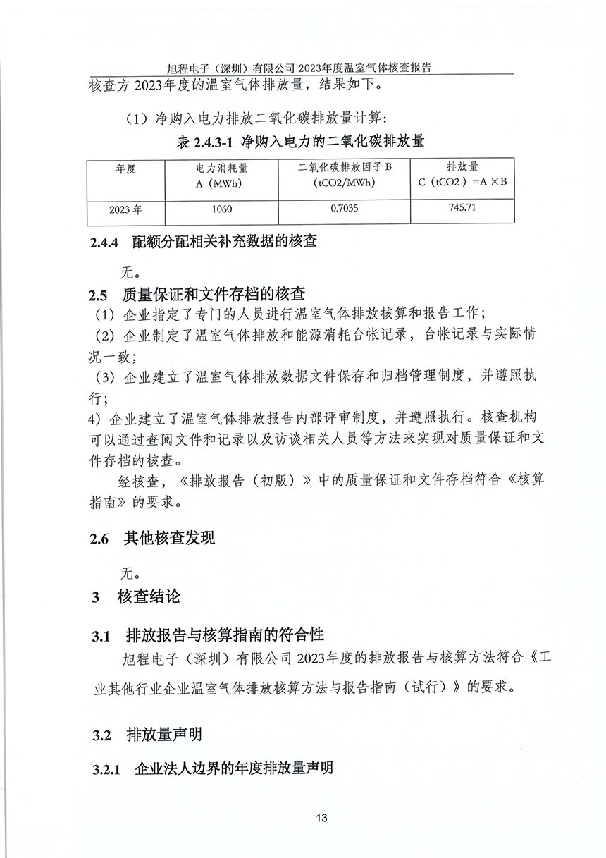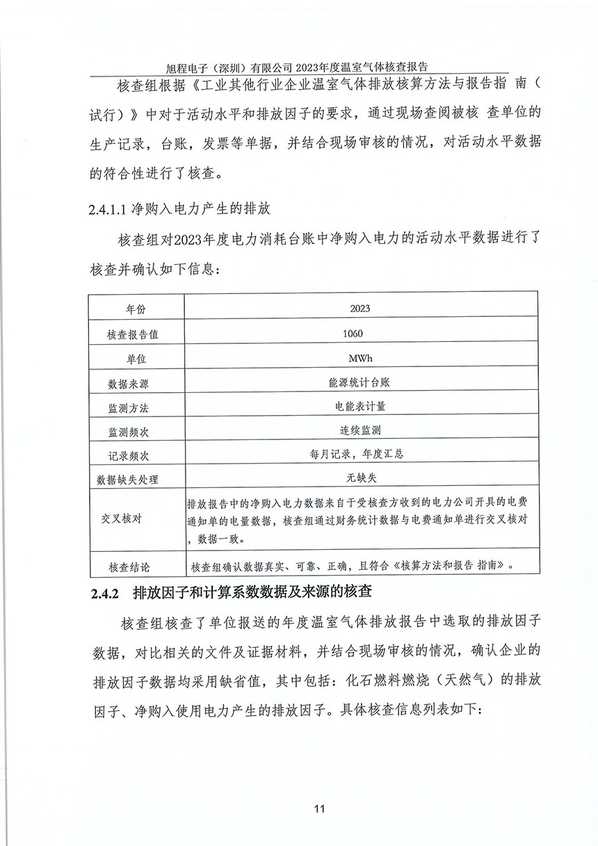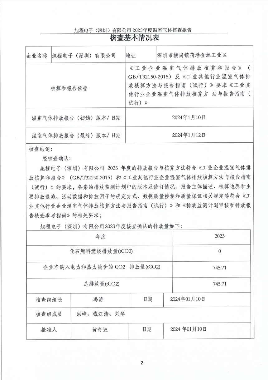 旭程電子(深圳)有限公司--2023年度溫室氣體排放核查報告