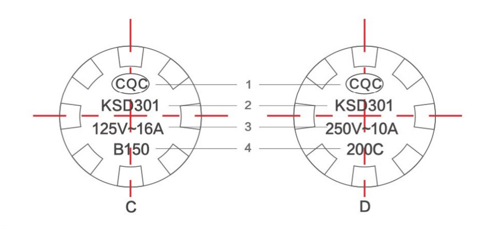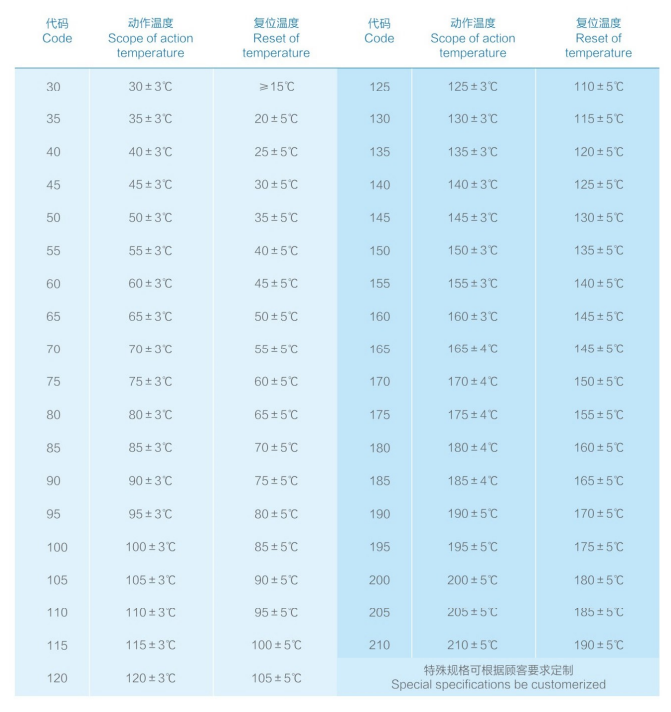 2.用數字表示,代表溫控器的動作溫度;用三位數表示:如:005、185;