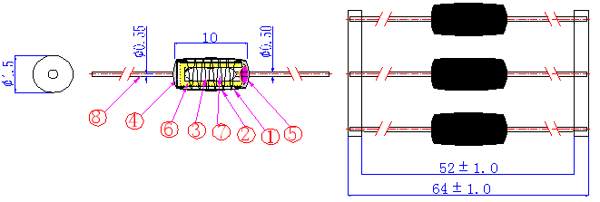5.1Pulling test:Fixed the body,applied level pull force of 5N to the lead wire for 1 minute, there shall be no damage with the body and lead wire.
